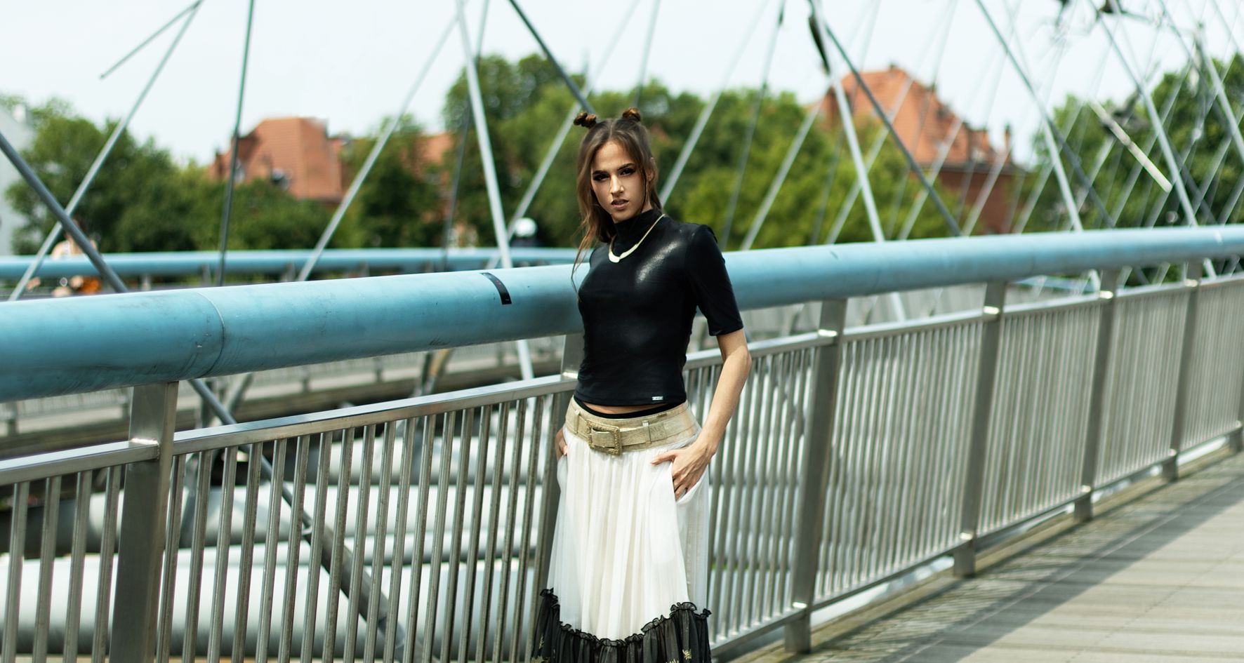 223002 Maxi Silk Skirt Black & White