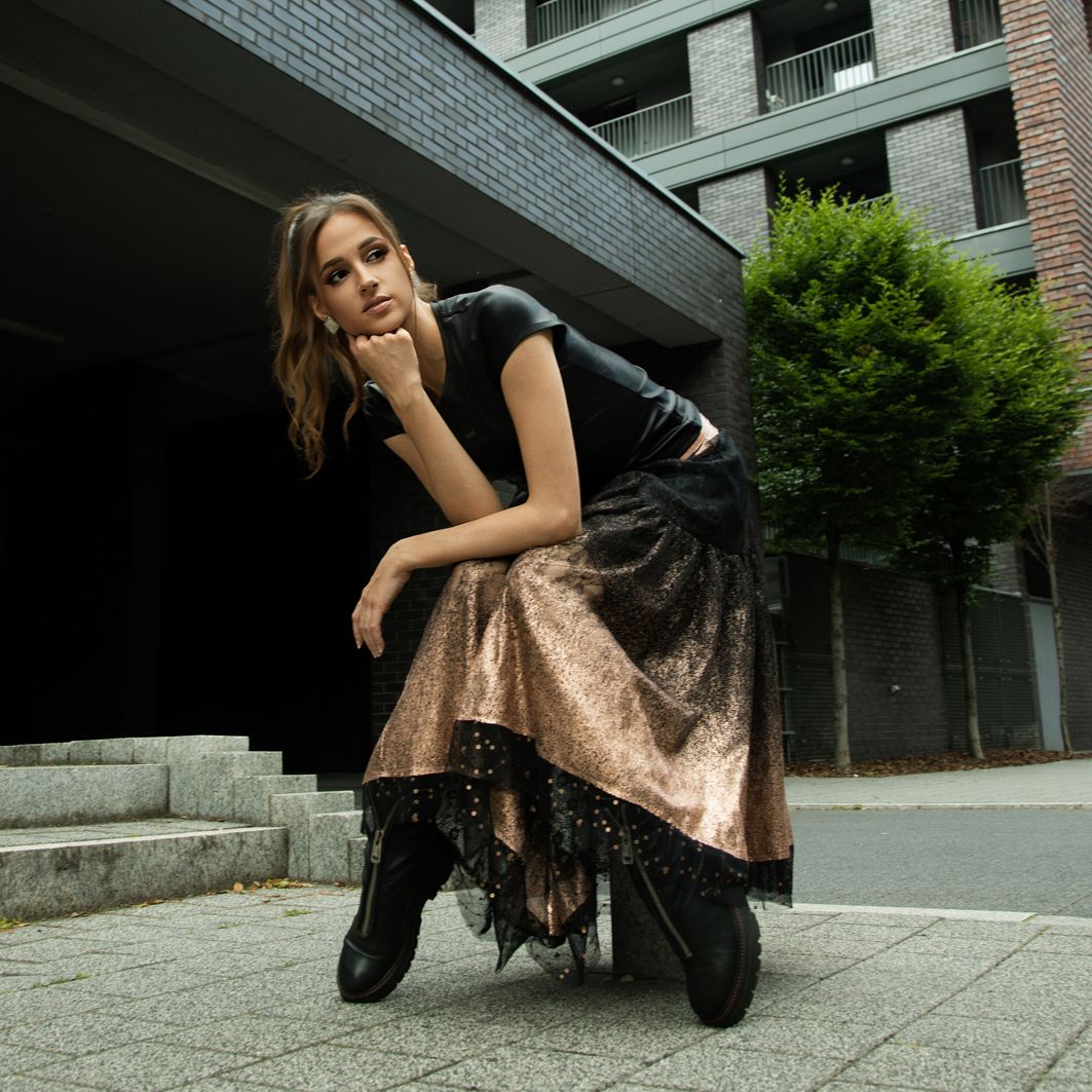 123002 Asymmetrical Silk Skirt Dark Beige