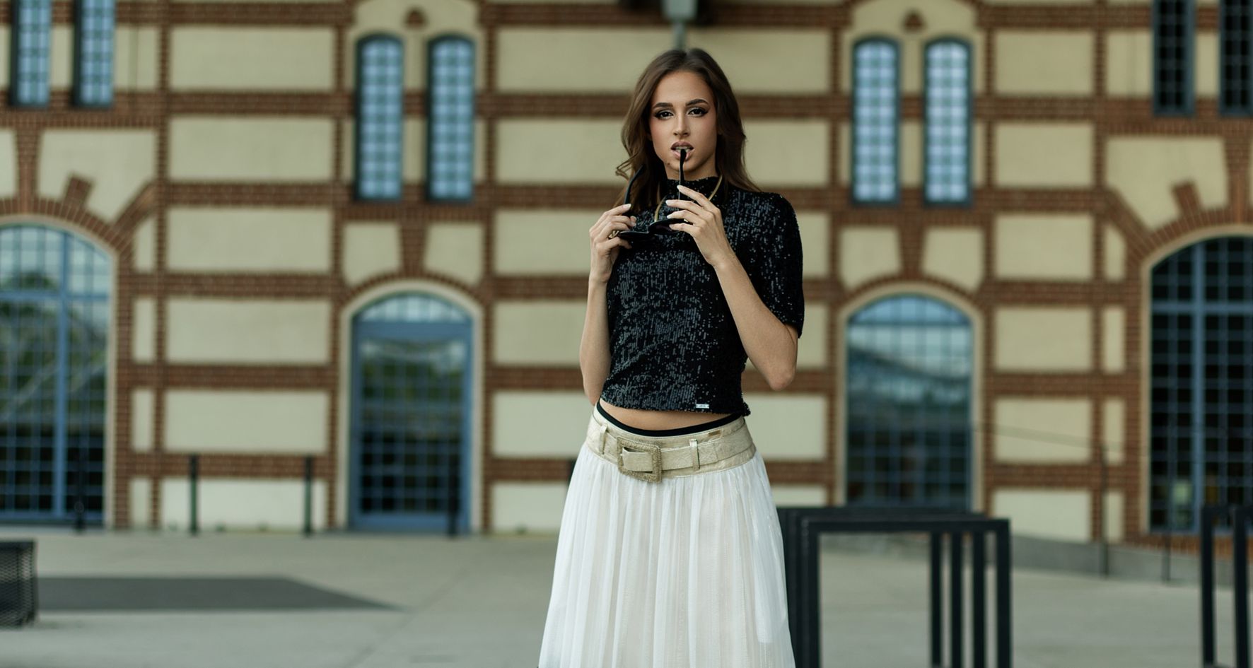 125008 Ondine – Silk Maxi Skirt with Ruffle Cream/Black