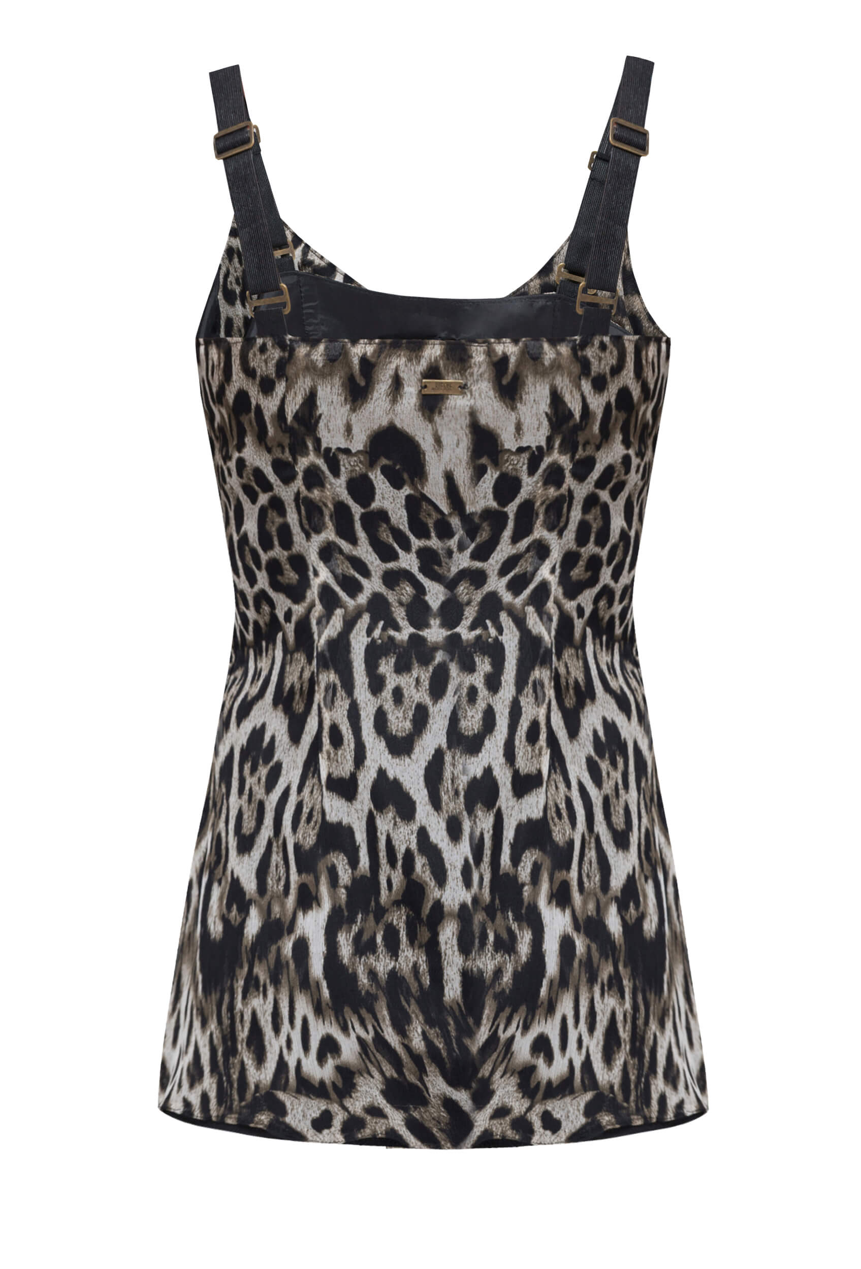 Animalistic theme is indisputable right now on world runway. Leopard- print pattern is one of the most fashionable trends this season. It appears also in our new spring collection. Our silk shoulder- strap top will be ideal with long pants and leather jacket. And for those who don’t have an issue with showing the sassy part of their personality, we propose this top with leather black shorts.