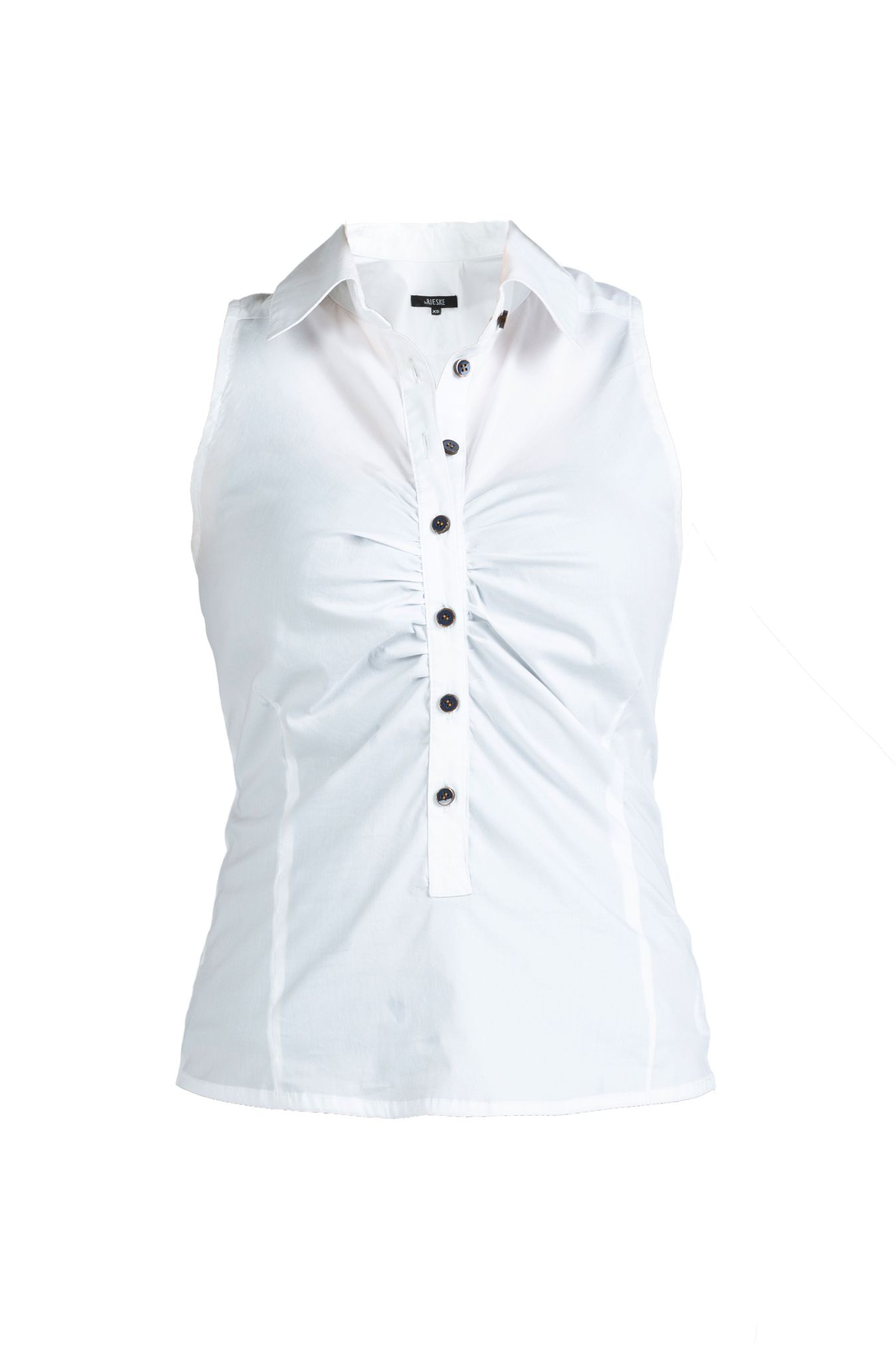 An elegant, sleeveless cotton top for women is the perfect solution for a jacket on hot days to work or a coffee meeting.