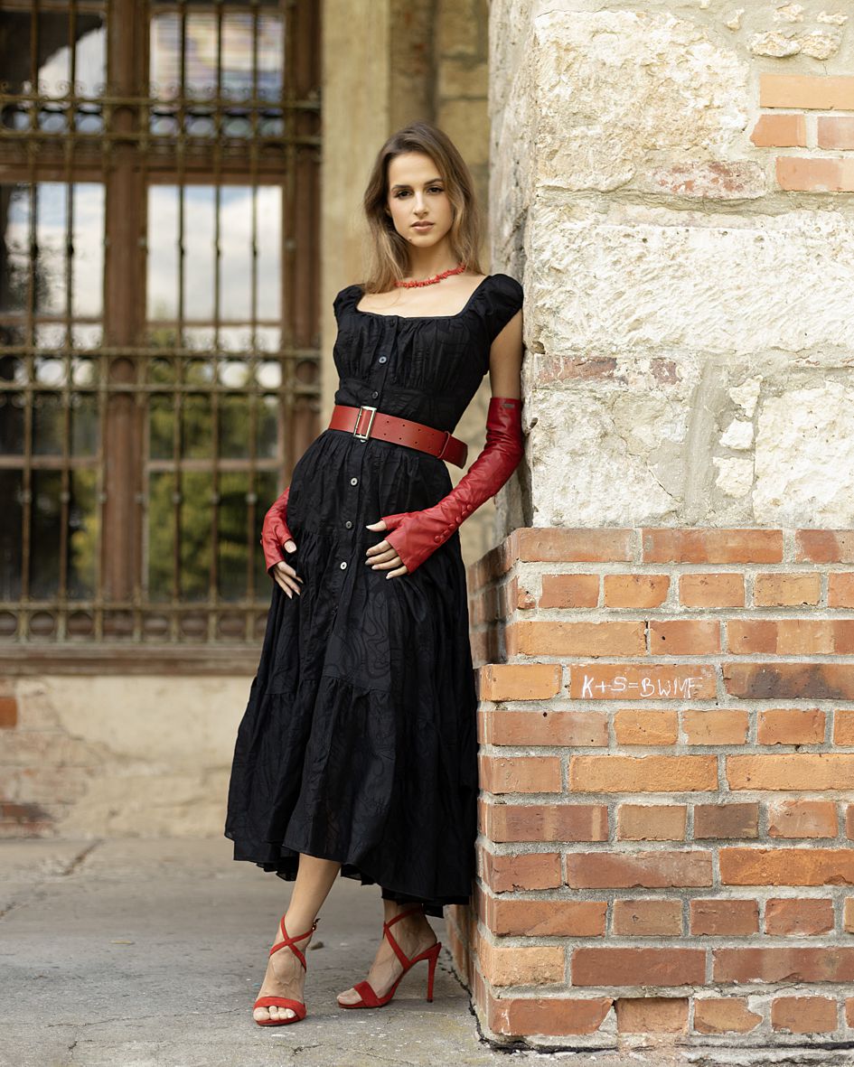 Our Milkmaid dress from the latest collection is extremely chic and elegant. The timeless cut enriched with asymmetry and the black color gives it a more mysterious and seductive character. It is perfect for both work and an evening out with friends. By choosing this look, you will definitely add a bit of vintage charm to your wardrobe.