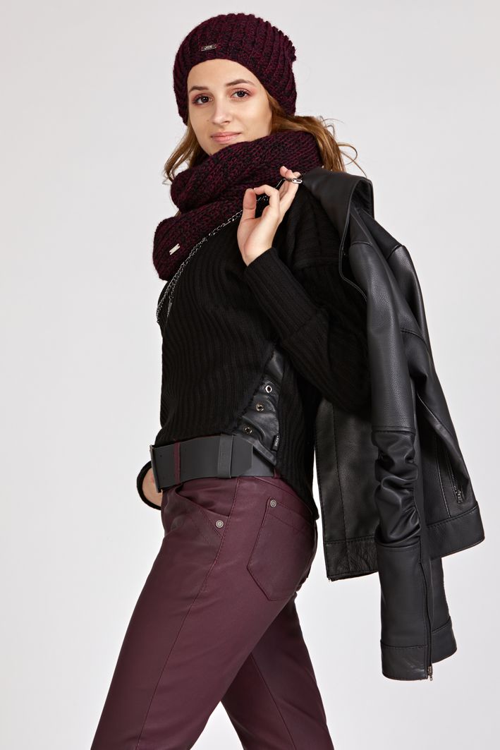 Our slim fit trousers made of Italian natural leather on stretch are coming in a fashionable plum color this season. It is a sophisticated everyday luxury since they provide incredible comfort and convenience.