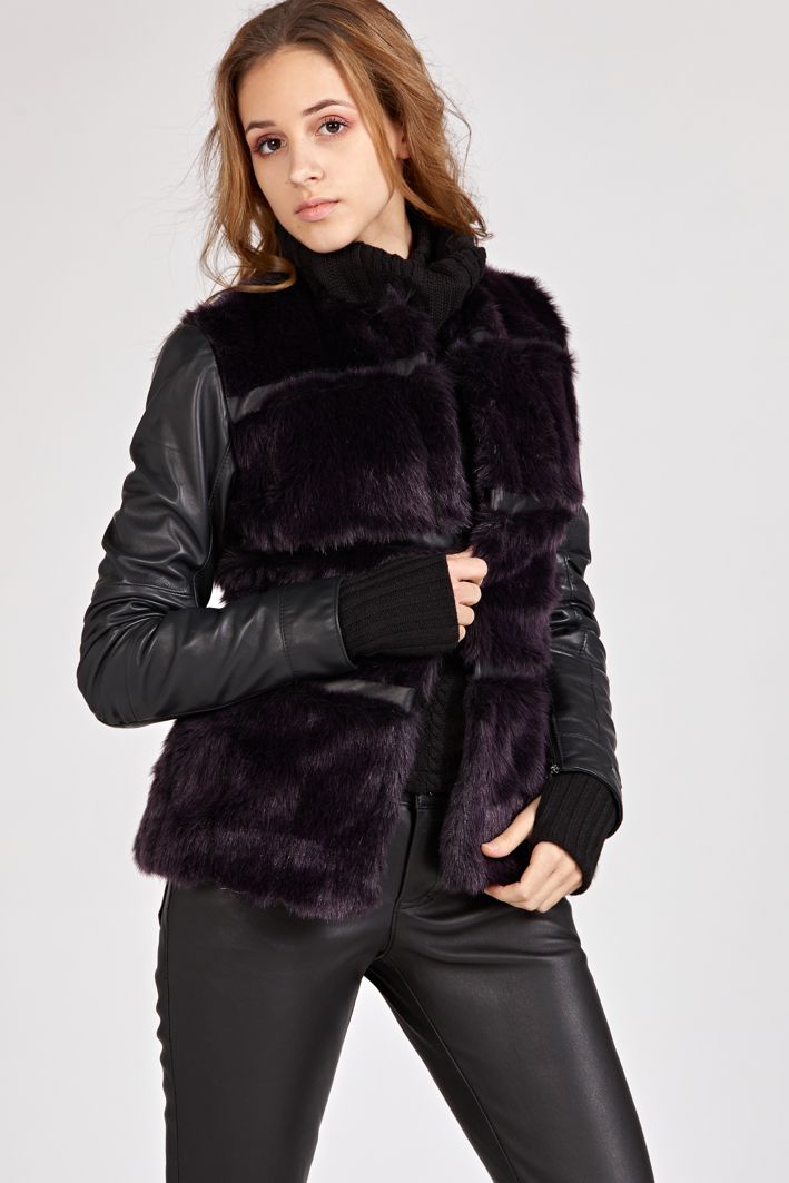 Faux fur has been dominating on catwalks for several seasons now. Our collection includes a fur jacket in a purple English color with a little bit of black leather. It is ideal for colder days.